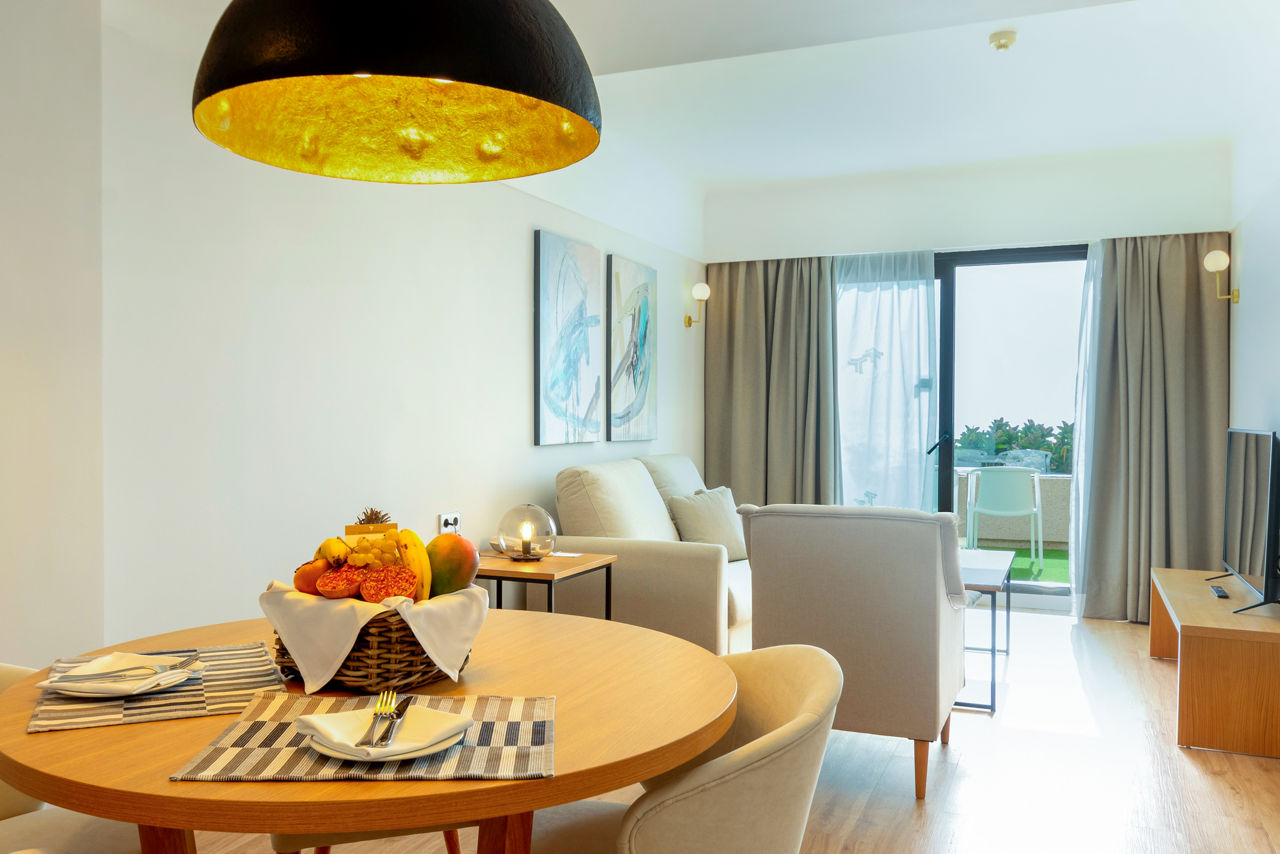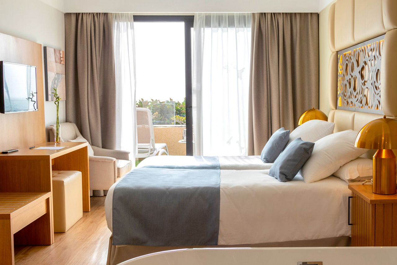 The impressive, tropical-style Hotel Grand Teguise Playa boasts an excellent beachfront location with stunning sea views. It's tucked away in a quieter part of Costa Teguise, yet within easy walking distance to all the resort has to offer, plus the promenade running in front of the hotel is perfect for a relaxing stroll along the coast. With a wealth of facilities and entertainment to suit all ages and a unique revolving lobby bar, the whole family is taken care of. Why not make the most of your stay and book a Superior Double or Twin room with Sea View? These modern rooms are located on the highest floors and have the best sea views. If you are looking for a relaxing break this hotel is the perfect choice.Double rooms sleep up to 3 adults and have a bathroom containing a bath with shower attachment, air conditioning, hairdryer, television, fridge and balcony or terrace. Room upgrade options and rooms for sole use are also available.