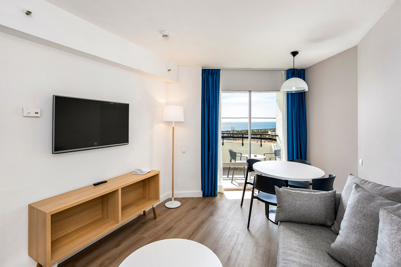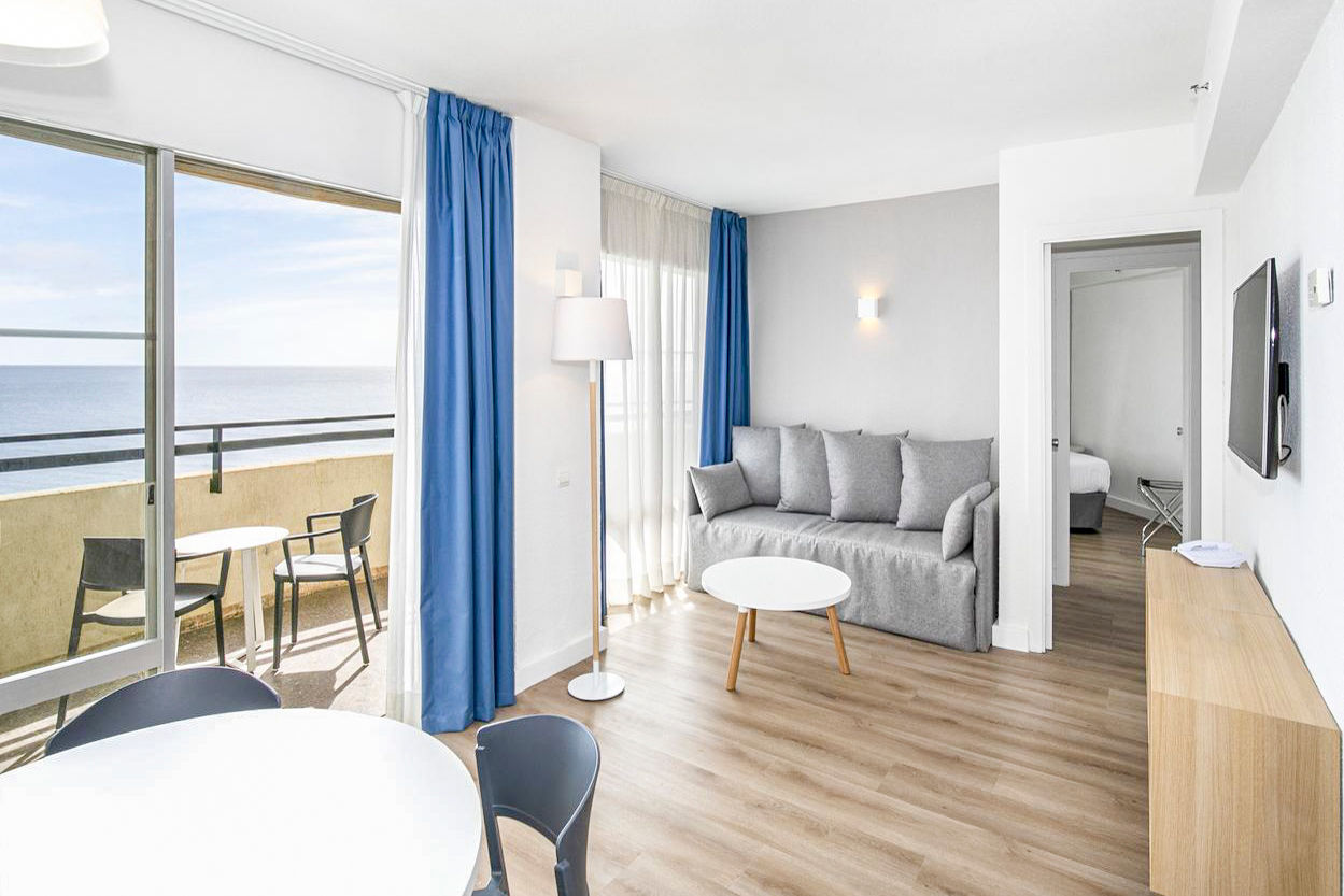 Located on the beachfront, the Sol Puerto Marina offers a prime location with direct access to the fabulous La Carihuela Beach. You'll be within easy reach of a variety of restaurants and bars making this hotel a perfect base for those wanting to explore. Take a stroll to the nearby marina for a taste of local charm. Relaxing more your thing? Take a dip in the outdoor pool with views of the Mediterranean sea and surrounded by lush gardens. The apartments here are spacious and well equipped too for a relaxing and welcoming stay. Plus there's entertainment on offer for the whole family making this hotel a perfect choice for your next break.Studios sleep up to 2 adults and have a full bathroom, air conditioning, TV, safe and furnished terrace. One bedroom apartments sleeping up to 4 adults and rooms with a sea view are also available. Two bedroom apartments sleeping up to 6 adults are available on request.