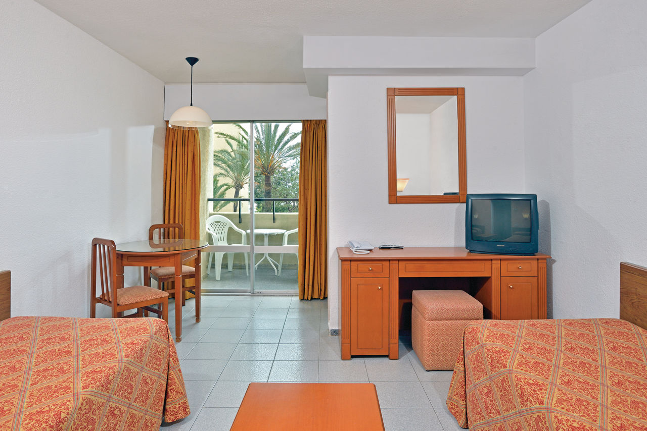 Studios sleep up to 2 adults and have a full bathroom, air conditioning, TV, safe and furnished terrace. One bedroom apartments sleeping up to 4 adults and rooms with a sea view are also available. Two bedroom apartments sleeping up to 6 adults are available on request.