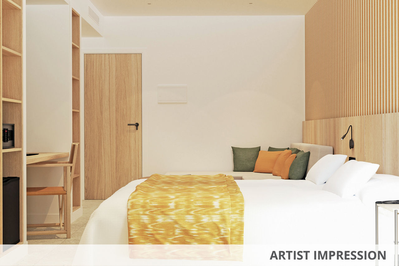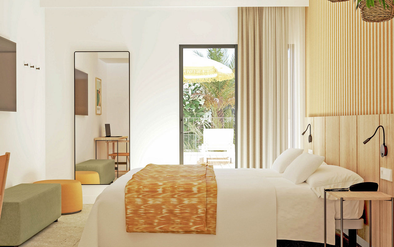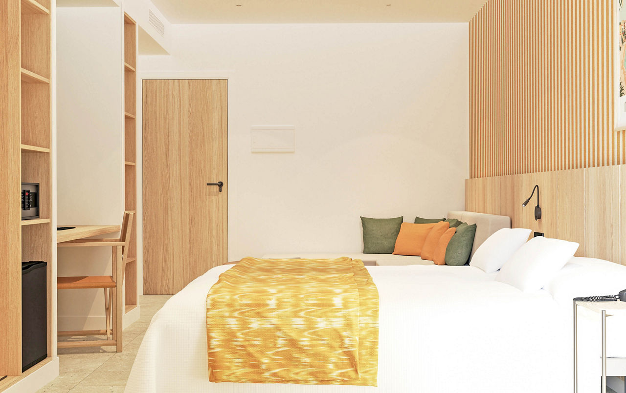 White, bright and in the spotlight, Tangerine by Honne Hotels is one of the freshest faces on the VIBE roster. Mornings here start with unlimited brunch, then the DJ keeps things lively by the pool. A beach, the Strip and rows of restaurants? They are all nearby too.Twin rooms sleep up to 3 adults and 1 child and have air conditioning, satellite TV, bathroom, and balcony or terrace. Single rooms are also available.